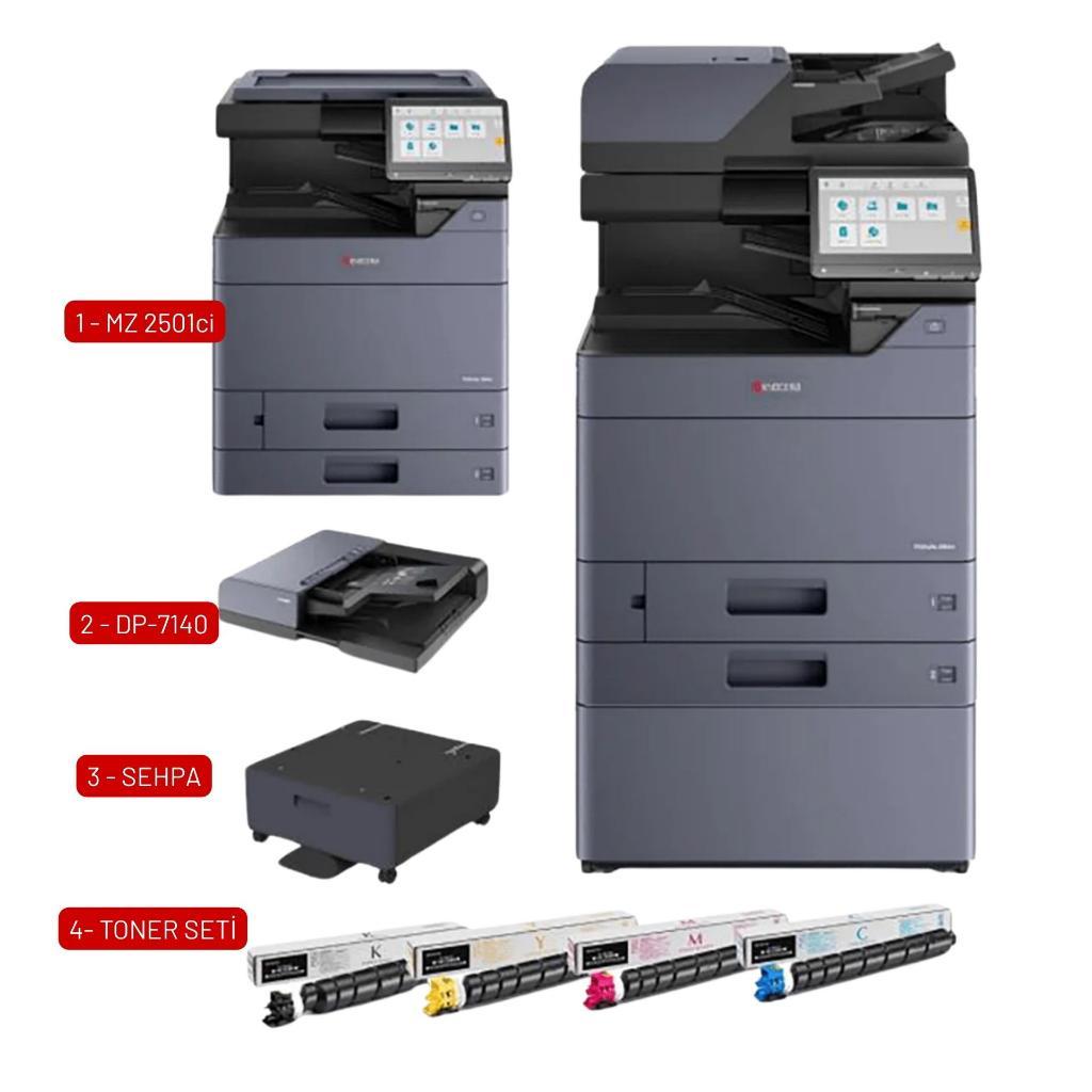 Kyocera TASKalfa MZ2501ci, yüksek hacimli doküman işlemleri gerektiren kurumsal ofisler ve işletmeler için tasarlanmış, üstün performanslı A3 renkli çok fonksiyonlu fotokopi makinesidir. Dakikada 25 sayfalık (A4) baskı hızı ve SRA3 formatına kadar genişletilmiş medya desteği sayesinde en zorlu baskı görevlerinin bile üstesinden kolayca gelir. Güçlü 4 çekirdekli işlemcisi ile donatılan bu cihaz, aynı zamanda 200 ipm gibi inanılmaz bir hızda çift taraflı tarama yapabilme kapasitesine sahiptir. Genişletilebilir kağıt tepsileri ve düşük enerji tüketimi ile hem verimliliğinizi maksimuma çıkarır hem de işletme maliyetlerinizi düşürür.